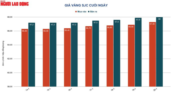 Tại Việt Nam, vào những ngày trước Tết, giá vàng SJC và giá vàng nhẫn tăng - giảm tùy vào sức mua, bán của người dân tại các tiệm vàng. Vì thế, giá vàng SJC có lúc tăng 500.000 đồng đến 700.000 đồng/lượng để lên tới 67,8 triệu đồng/lượng nhưng sau đó giảm mạnh. Đến cuối ngày 20-1 (29 Tết), giá vàng SJC xuống còn 68 triệu đồng/lượng.