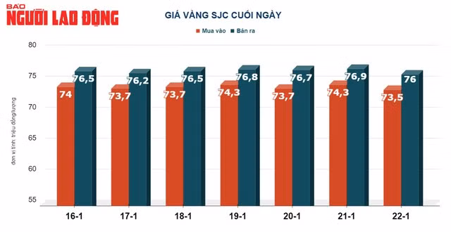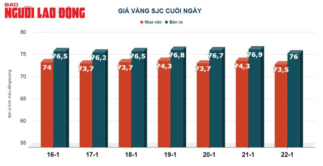 Tại Việt Nam, giá vàng trong 2 ngày gần đây biến động hết sức bất thường. Cụ thể, sau khi giảm hơn 1 triệu đồng/lượng, giá vàng SJC đã tăng trở lại 800.000 đồng/lượng - lên 76,3 triệu đồng/lượng. Đến ngày 22-2, do sức mua yếu nên giá vàng SJC xuống còn 76 triệu đồng/lượng.