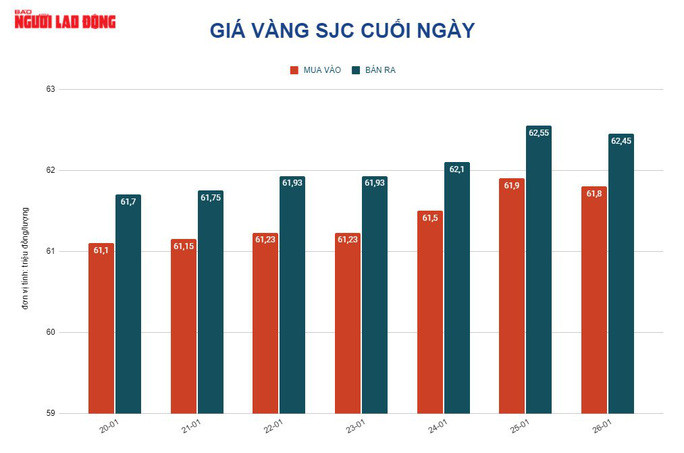 Trước đó, giá vàng SJC tại Việt Nam ngày giảm 100.000 đồng/lượng, chốt cuối ngày tại 62,45 triệu đồng/lượng. Như thế, giá vàng trong nước cao hơn giá vàng thế giới quy đổi khoảng 12,5 triệu đồng/lượng.
