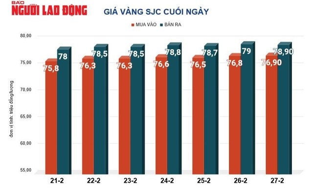 Tại Việt Nam, do bị bán chốt lời nên giá vàng SJC trong ngày 27-2 giảm mạnh 600.000 đồng/lượng, chốt cuối ngày tại 78,9 triệu đồng/lượng.