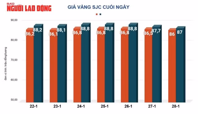 Trước đó, tại Việt Nam, trong ngày 29 Tết (28-1) một số tiệm vàng bán ra vàng nhẫn với giá 87,7 triệu đồng/lượng, ngang bằng với giá vàng miếng SJC.