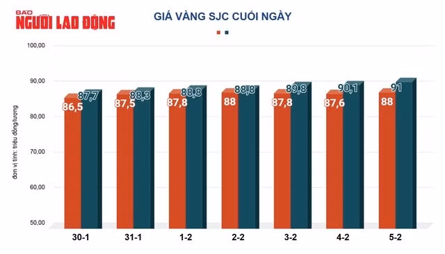 Tại Việt Nam, do giá vàng thế giới và sức mua lên cao nên cuối ngày mùng 8 Tết (5-2 ) giá vàng SJC bán ra 91 triệu đồng/lượng. Giá vàng nhẫn cũng lên tới 90,5 triệu đồng/lượng.