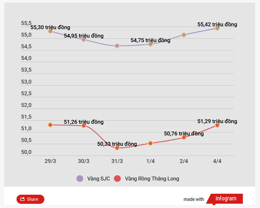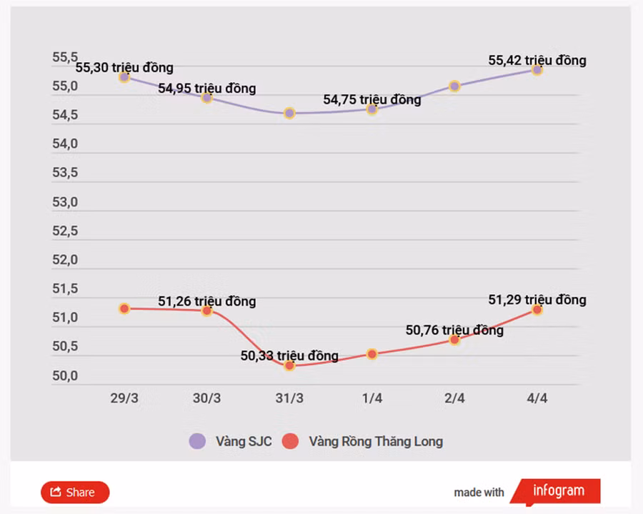 - Biến động giá vàng trong nước tuần trước: