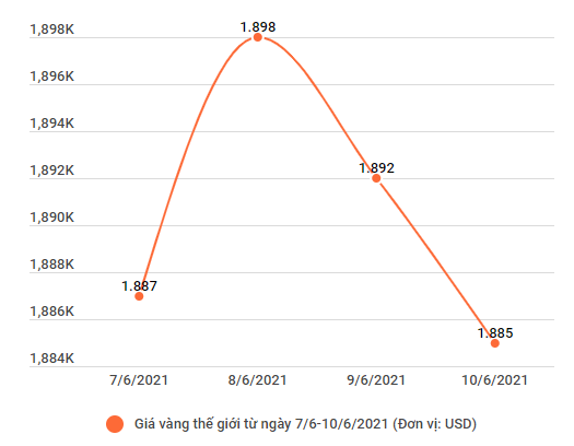 Trên thế giới, giá vàng không có biến động, hiện giao dịch quang mức 1.885 USD/ounce. Mức giá này tương đương 52,37 triệu đồng/lượng khi quy đổi theo tỷ giá USD niêm yết tại ngân hàng Vietcombank và thấp hơn thương hiệu SJC 4,83 triệu đồng mỗi lượng.