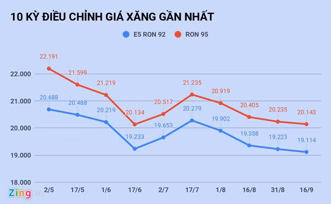 Trong lần gần nhất giá xăng dầu được điều chỉnh ngày 16/9, liên Bộ Tài chính - Công Thương đã quyết định điều chỉnh giảm giá các mặt hàng xăng.