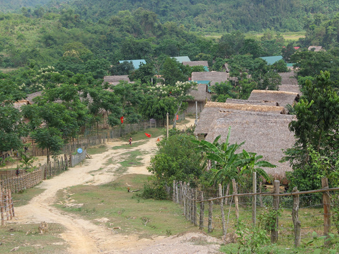 Bản Búng có 112 nóc nhà sàn, phần lớn lợp tranh, nằm co cụm thành 2 khu cạnh khe Khặng. Bốn bề trùng điệp núi rừng. Nhìn chốn thâm sơn cùng cốc này, tôi không hình dung được vì sao người Đan Lai lại xuất hiện và sinh sống được ở giữa rừng thẳm gần biên giới Việt - Lào, nơi vùng lõi của Vườn quốc gia Pù Mát này. “Người Đan Lai có gốc từ người Kinh. Khoảng hơn 300 năm trước, tổ tiên họ La chúng tôi sống dưới hạ nguồn khe Khặng, bị một bạo chúa trong vùng bắt phải nộp 100 cây nứa bằng vàng. Cả họ đi tìm nhưng không được, sợ bị giết nên kéo nhau ngược nguồn khe Khặng, tìm đến đây để chạy nạn. Vì thế, người Đan Lai chỉ có hai họ là La và Lê”, ông La Văn Quyết (ở bản Búng) kể khi trò chuyện với tôi. Đây cũng là giả thuyết nghe hợp lý nhất trong một số giả thuyết giải thích cho sự tồn tại của tộc người Đan Lai ở chốn thâm sơn này.
