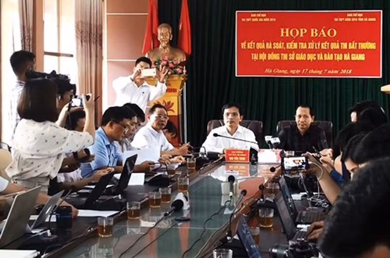 Cuộc họp báo thông tin về điểm thi THPT tại Hà Giang hồi tháng 7-2018