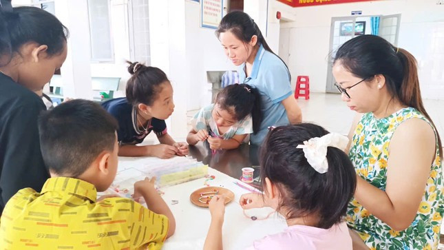Tại đây, các em được trải nghiệm đọc sách, giáo dục kỹ năng sống, xếp lá dừa nghệ thuật, trải nghiệm làm vòng tay,....