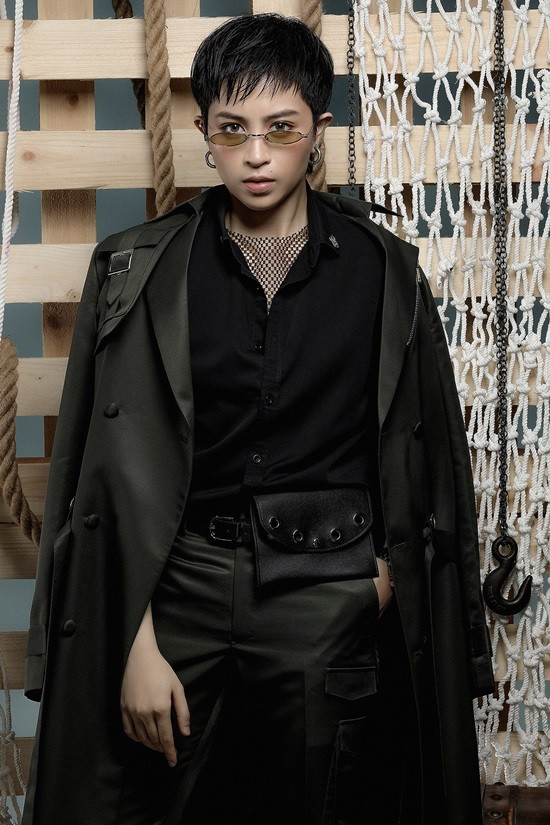 | Ca sĩ phối áo bomber và quần lửng với bốt tất. Ba kiểu mốt này đang được ưa chuộng trên thế giới trong suốt hai năm qua. Giám đốc nghệ thuật: Chung Thanh Phong, trang điểm: Tee Le, làm tóc: Bi Sin. |