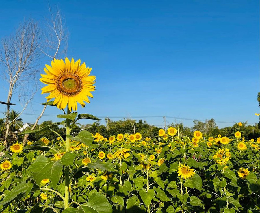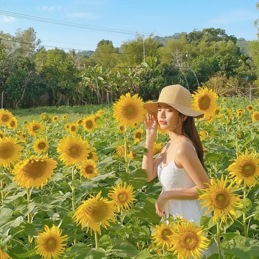 Vườn hoa hướng dương rộng 7.000 m2 tọa lạc xã Cửa Dương, TP.Phú Quốc (Kiên Giang) đang thu hút rất đông giới trẻ đến 'sống ảo'.