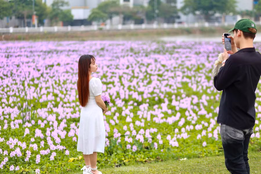 | Khám phá địa điểm 'hot' nhất Long Biên thu hút giới trẻ đổ xô săn ảnh đẹp với cánh đồng hoa lục bình tím biếc. |