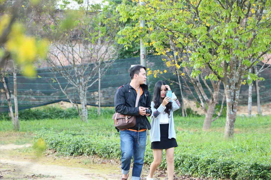 | Vườn hoàng mai có 150 gốc, không có ai bảo vệ nhưng những người đến đây đều có chung một ý thức là chỉ chụp ảnh chứ không xảy xa tình trạng ngắt hoa, bẻ cành. Ảnh: PĐ. |
