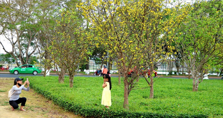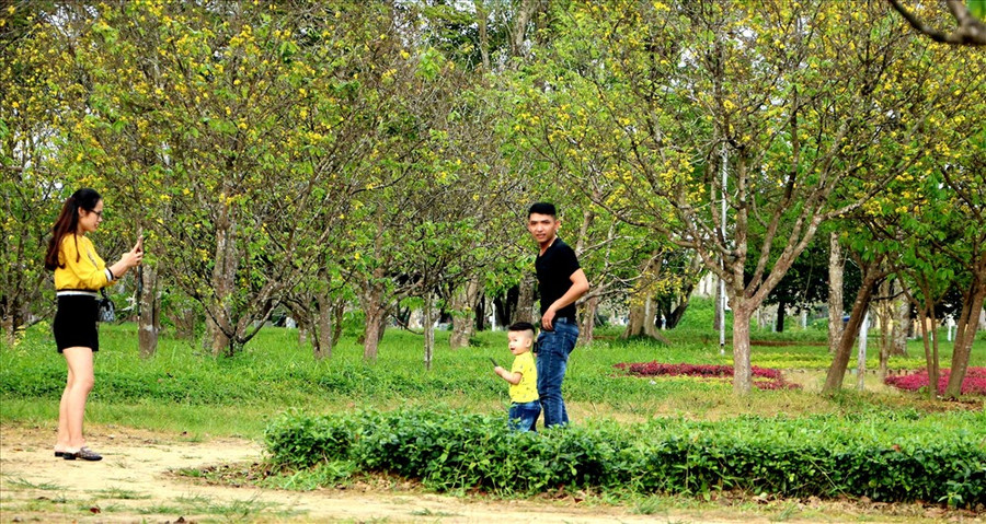 | Dù còn 2 tuần nữa mới đến Tết Nguyên đán Canh Tý, nhưng vườn hoàng mai do Trung tâm Công viên cây xanh Huế quản lý (đường Lê Duẩn, TP. Huế) đã nở rộ. |