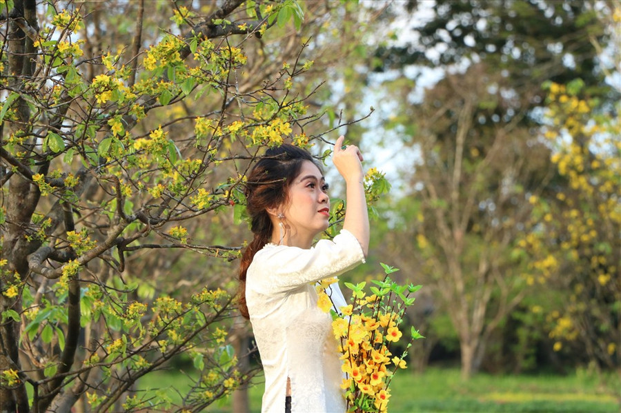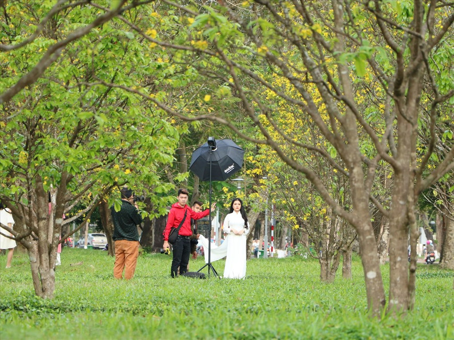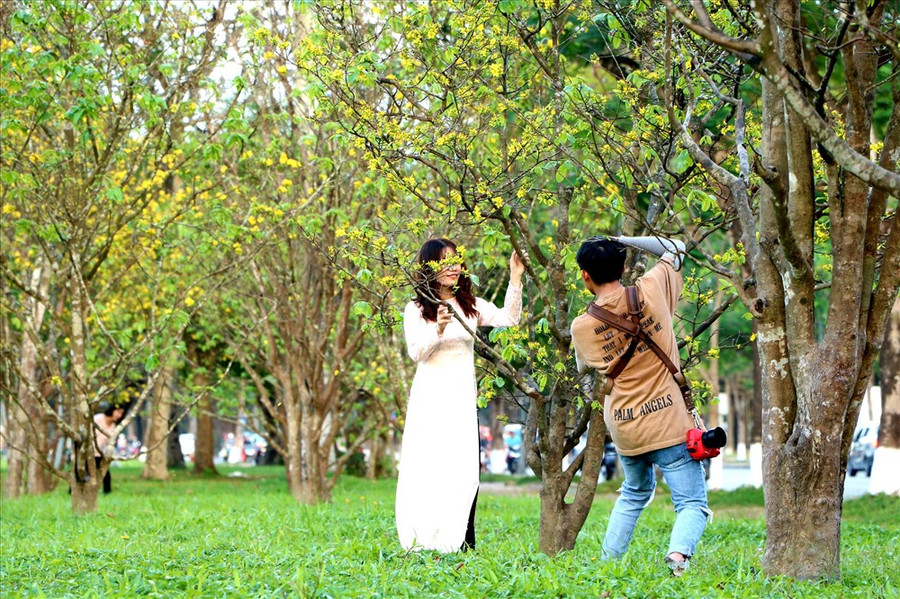 Những ngày qua, vườn hoàng mai dọc đường Lê Duẩn (TP. Huế) nở rộ tạo nên một khung cảnh tuyệt đẹp. Nhiều người tìm tới đây để chụp cho mình những bức ảnh ưng ý nhất, đặc biệt là giới trẻ.