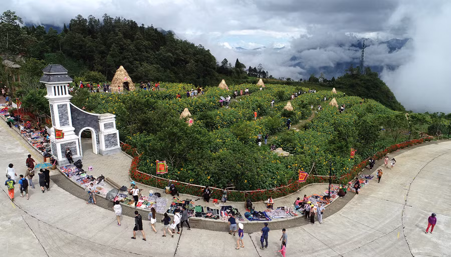 Cách trung tâm thị trấn khoảng 2 km, cánh đồng hoa hướng dương tại chân núi Fansipan nhất định sẽ trở thành một trong những địa điểm không được bỏ lỡ khi du lịch Sapa.