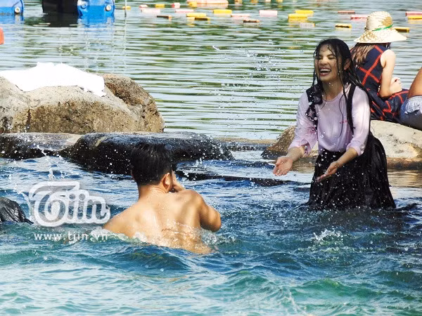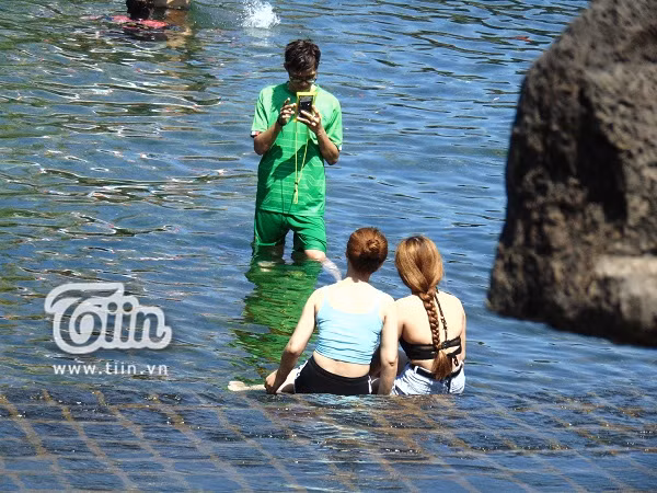 Khoảnh khắc nô đùa, tận hưởng sự mát mẻ dưới dòng nước.