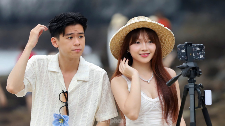 Hàng trăm bạn trẻ tham quan, du lịch tại Cát Bà (Hải Phòng) thích thú tìm đến bãi tắm Cát Cò chụp ảnh, check-in lưu lại những khoảnh khắc đẹp lúc bình minh trên bãi đá.