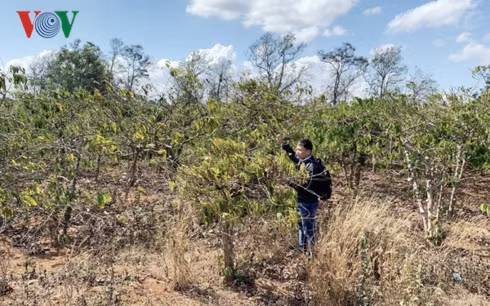 “Nhờ giếng của hàng xóm nhưng lúc được, lúc không. Họ cũng phải tưới, chứ đâu có để không cho mình tưới được. Nước khó khăn như vậy thì cứ đi xin hàng xóm. Họ cũng phải tưới nên mình chỉ có thể tưới vào ban đêm thì phải canh. Cà phê mới trồng, héo rũ hết rồi”, bà Lệ Xuân nói.