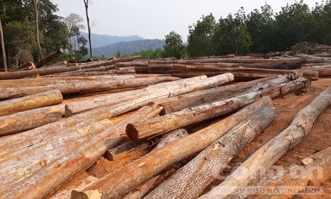 Để triển khai cụm công trình thuỷ lợi Ia H’Drai (đợt 1) tại xã Ia Tơi, huyện Ia H’Drai, Kon Tum hơn 11 ha rừng đã phải “hi sinh”. Hiện các đơn vị được giao tận thu đã thực hiện việc cưa hạ gỗ.