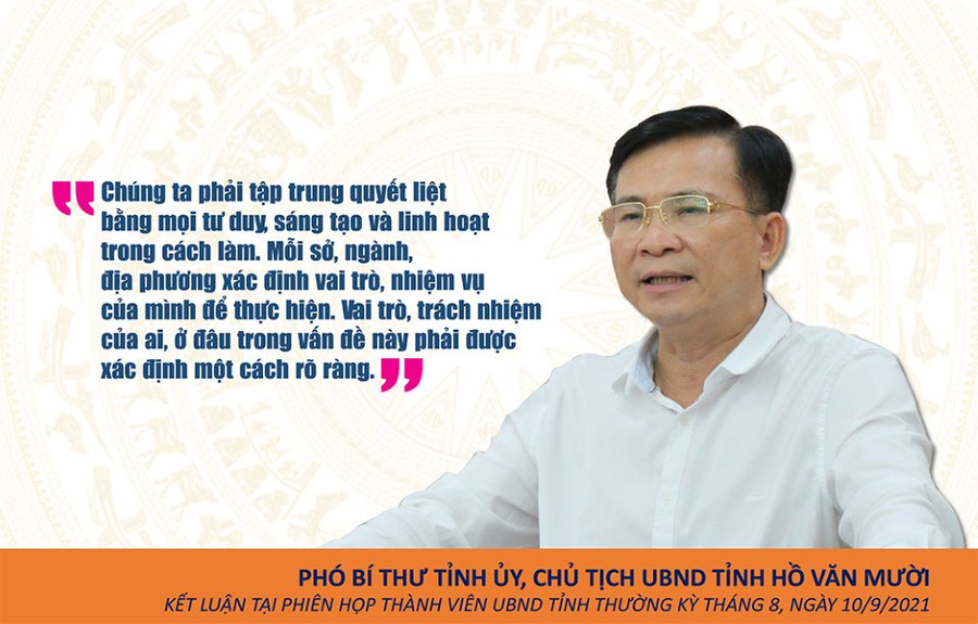 Chủ tịch UBND tỉnh Hồ Văn Mười cũng cho biết, thời gian hiện nay không còn nhiều. Ngay từ bây giờ, không kể thứ 7, chủ nhật hay ngày lễ, toàn tỉnh phải tập trung vào làm. Trong quá trình làm, các sở, ngành, địa phương phải có sự kết nối. Mỗi đơn vị phải có sự chủ động, linh hoạt trong các khâu từ khi phê duyệt, hoàn thiện hồ sơ đến giải phóng mặt bằng, thi công các công trình, dự án.
