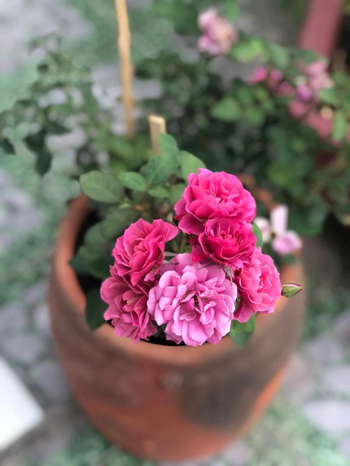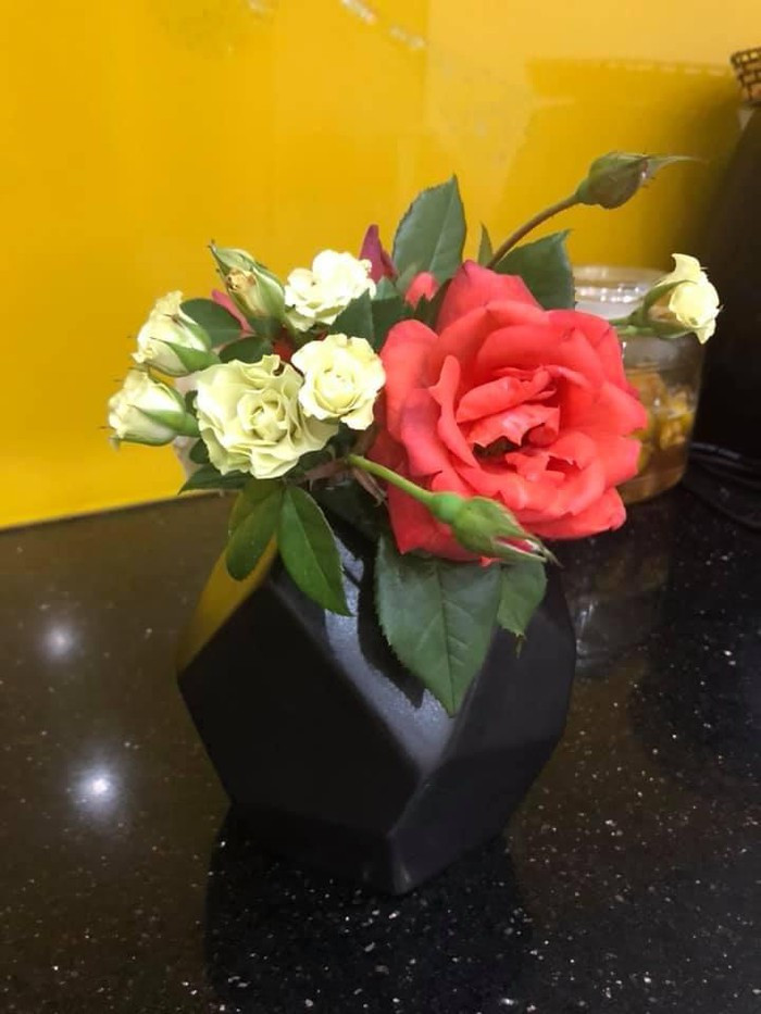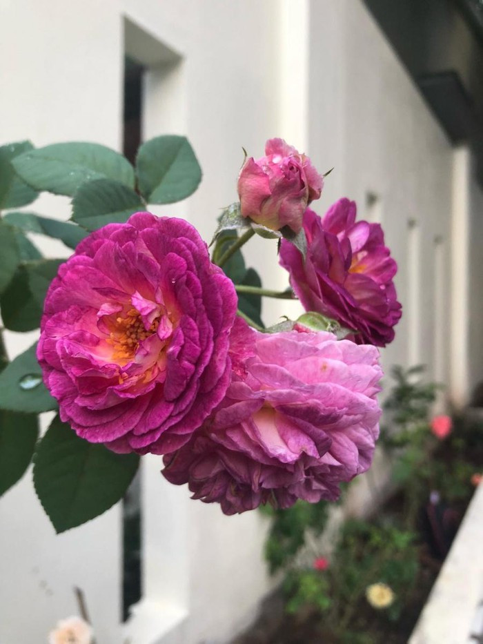 Giấc mơ giản dị ấy của chị đành gác lại sau những năm tháng học tập tuổi trẻ, kết hôn và sinh con. Cách đây 2 năm, khi các con đã lớn hơn một chút, công việc cũng đã có phần ổn định, chị quyết tâm trồng hồng. Những cây hồng đầu tiên được chị trồng là Juliet, Vineyard song, Blue Sky, Catalina...