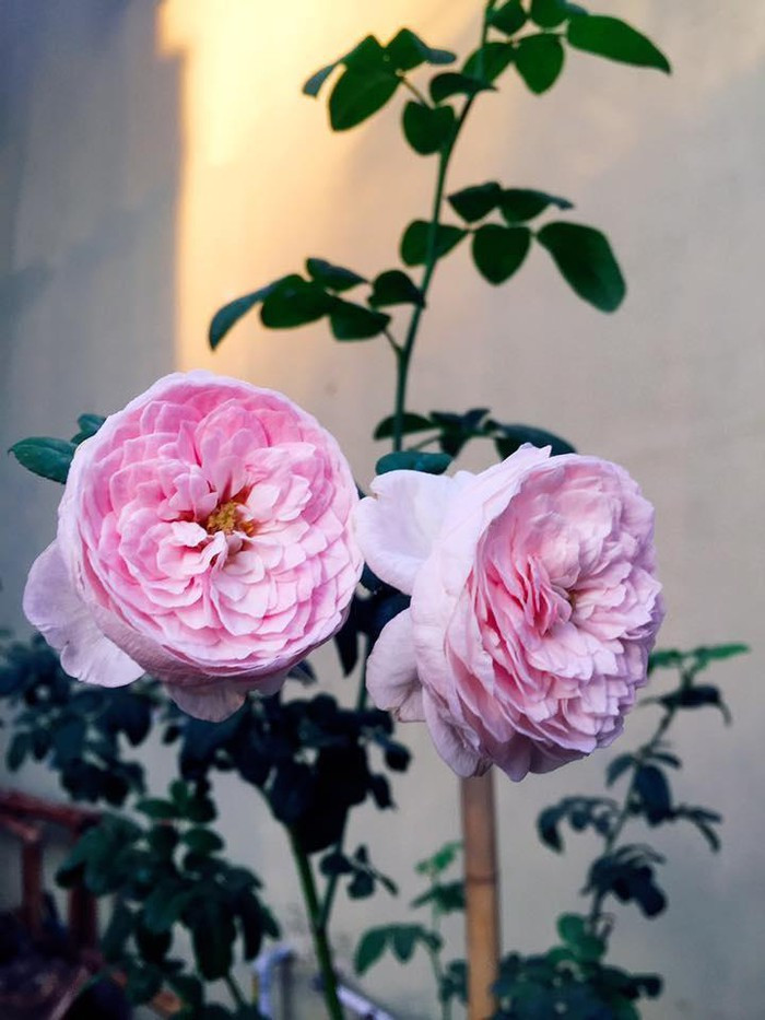 | Những cành hồng dịu dàng nở hoa trong nắng. |