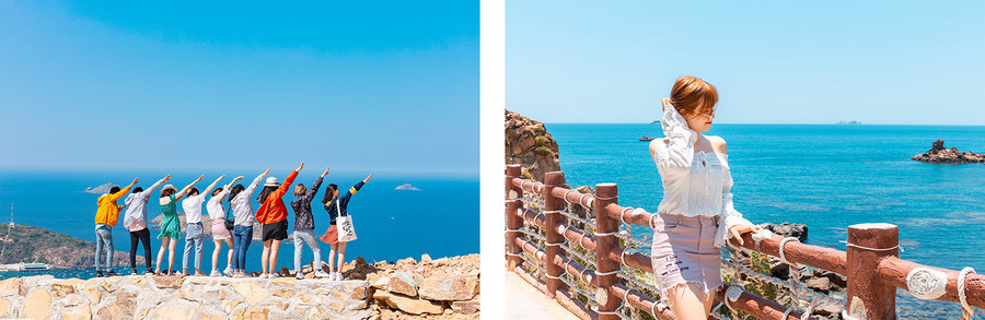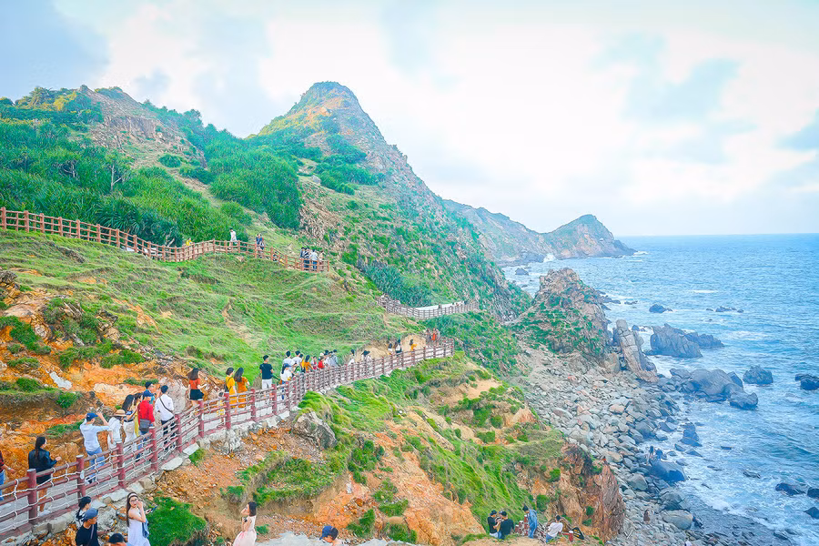 Được mệnh danh là nơi ngắm bình minh đẹp bậc nhất Việt Nam, nơi đây sẽ mang đến trải nghiệm đáng nhớ nếu bạn có thể dậy sớm, tận hưởng khoảnh khắc quả cầu lửa dần ló rạng khỏi chân trời và những vệt sáng hồng lan toả trên sóng nước. Con đường có tay vịn màu đỏ quanh co và hàng trăm bậc thang ở đây gợi nhắc đến khung cảnh tại nhiều vùng đảo của Nhật Bản, Hàn Quốc.