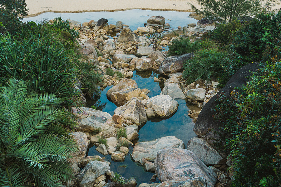 Không nhiều cây cối xanh mát, Hòn Khô chỉ toàn đá, cát và biển xanh. Điều này tạo cho Hòn Khô nét hoang sơ đặc trưng. Biển nơi đây sạch và trong đến mức bạn có thể dễ dàng nhìn thấy đáy biển cùng những rặng san hô đầy màu sắc. Ở đây còn có một con đường giữa biển sẽ mang đến cho bạn một trải nghiệm thú vị.