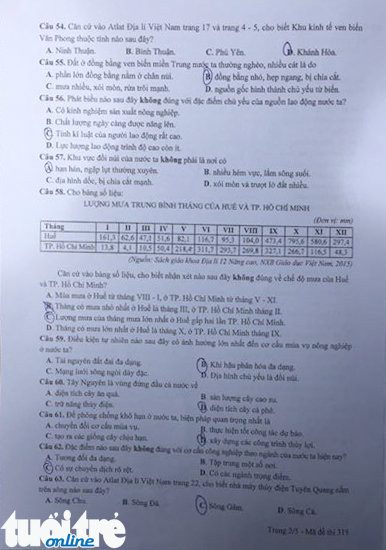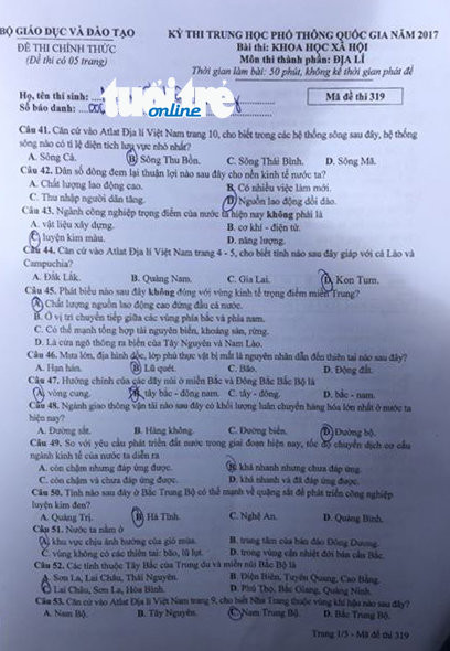 Sáng 24-6, các thí sinh làm bài thi tổ hợp Khoa học xã hội gồm 3 môn: Lịch sử, Địa lý và Giáo dục công dân.