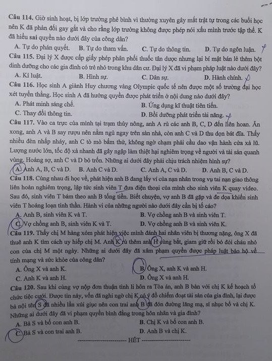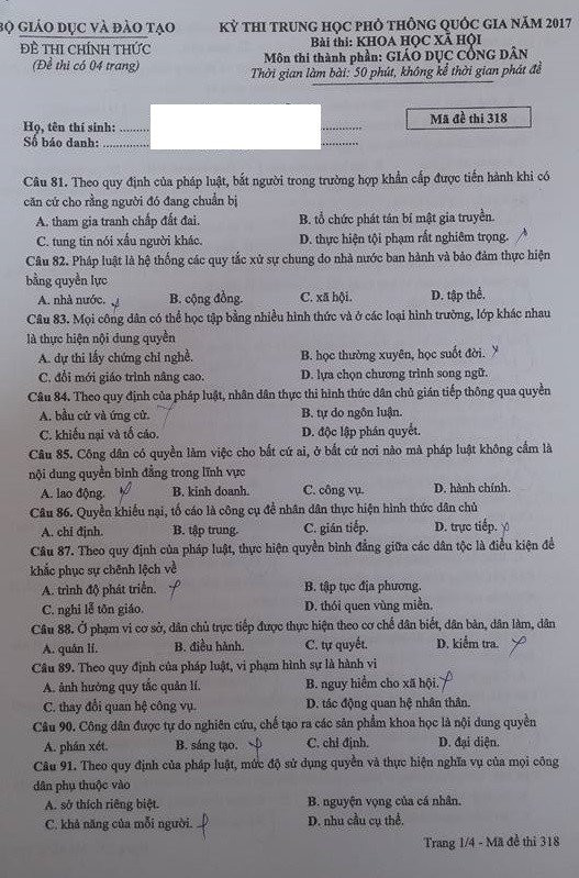 Sáng 24-6, các thí sinh làm bài thi tổ hợp Khoa học xã hội gồm 3 môn: Lịch sử, Địa lý và Giáo dục công dân.