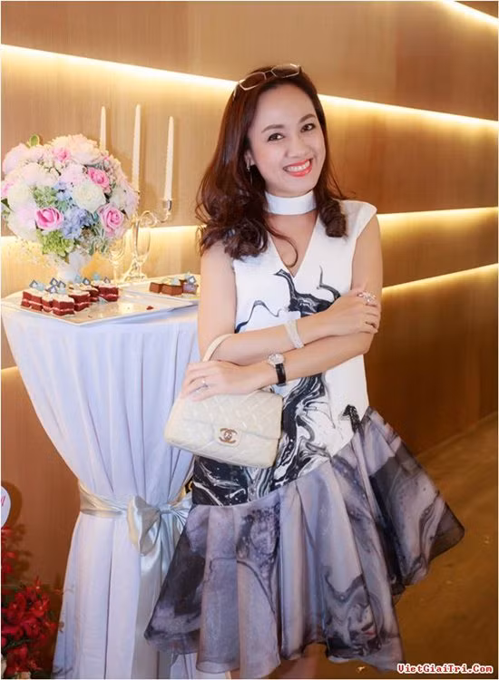 Hoài Anh đi dự sự kiện trong chiếc váy rất độc đáo và tinh tế màu trắng pha họa tiết trừu tượng màu xám đen. Vẫn sử dụng chiếc túi hiệu Chanel quen thuộc, thiết kế váy vạt xéo lệch một bên và vòng cổ trắng tinh dạng Chocker kết hợp với chiếc kính được cài lên mái tóc nâu sóng sánh khiến Hoài Anh thêm phần trẻ trung.