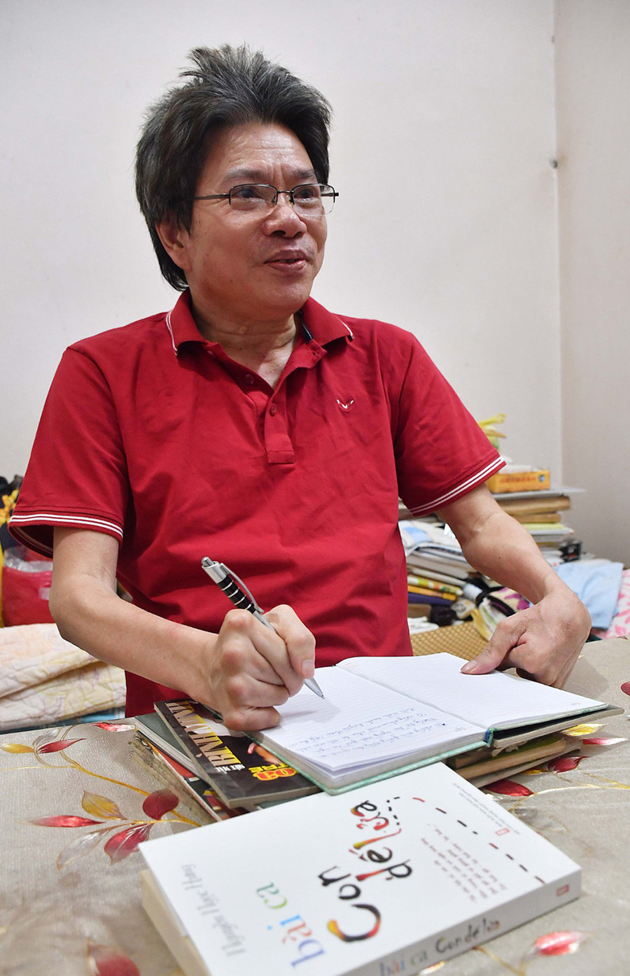 Có lần viết về anh, tôi gọi anh là “Nhà thơ đi thực tế bằng thơ”. Nằm một chỗ, chân tay cứng đơ như que củi, anh đọc thơ như một cách đi thực tế để làm thơ. Và thơ tình anh viết như thế này: “Nắng tắt chân trời gió trốn vào cây/Hồn nhiên lá vẫn chơi trò cút bắt/Em tinh nghịch ẩn mình sau khúc ngoặt/Để tặng cho tôi một cái... giật mình?!”.
