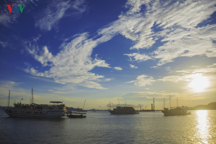 Từ thành phố ra đến vịnh, nắng lên muộn, màu nước dường như xanh thẫm hơn, những đảo đá trầm mặc hơn.