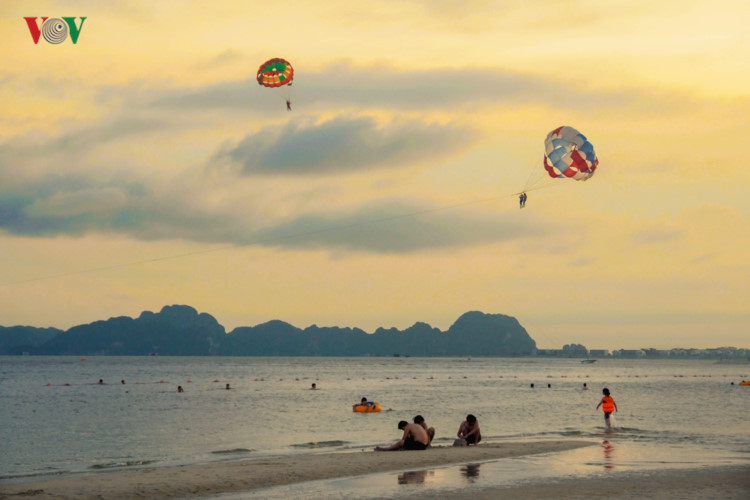 Hoàng hôn chìm dần xuống biển Bãi Cháy nhìn từ phía Hòn Gai.