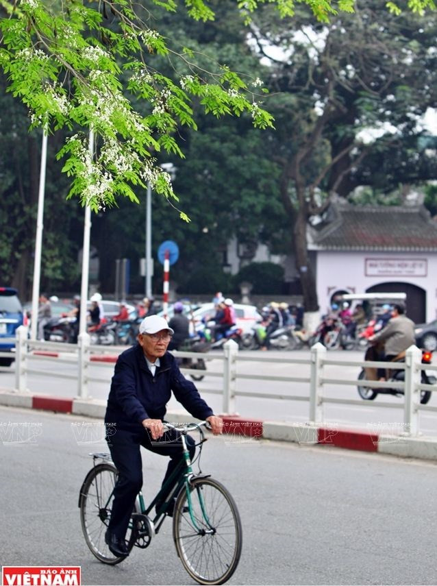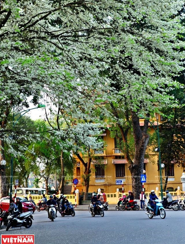 Hoa sưa đẹp dịu dàng, tinh tế làm tôn thêm vẻ đẹp cổ kính của Hà Nội.