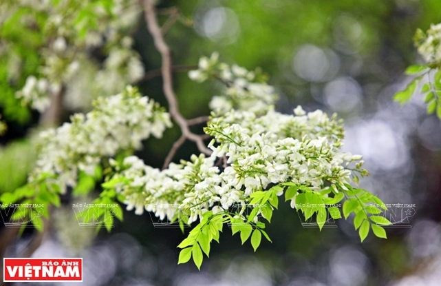 Những tán hoa sưa trắng muốt ngả xuống mặt hồ làm cho cảnh sắc của Hà Nội trở nên ấn tượng hơn.