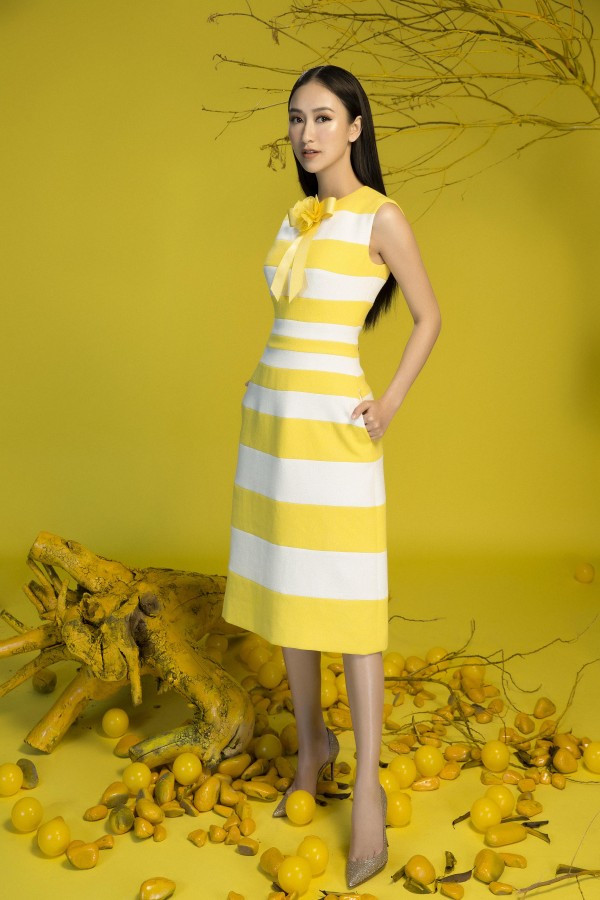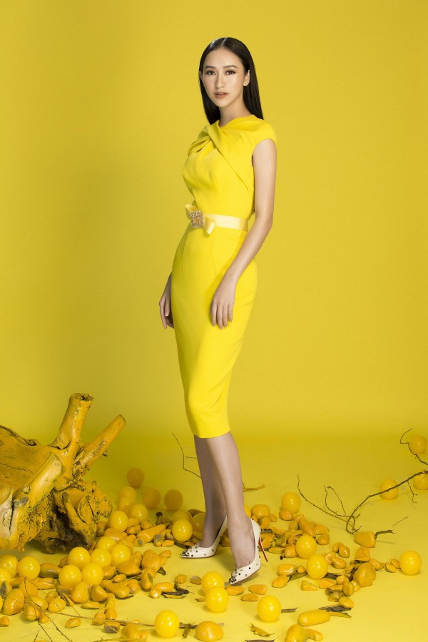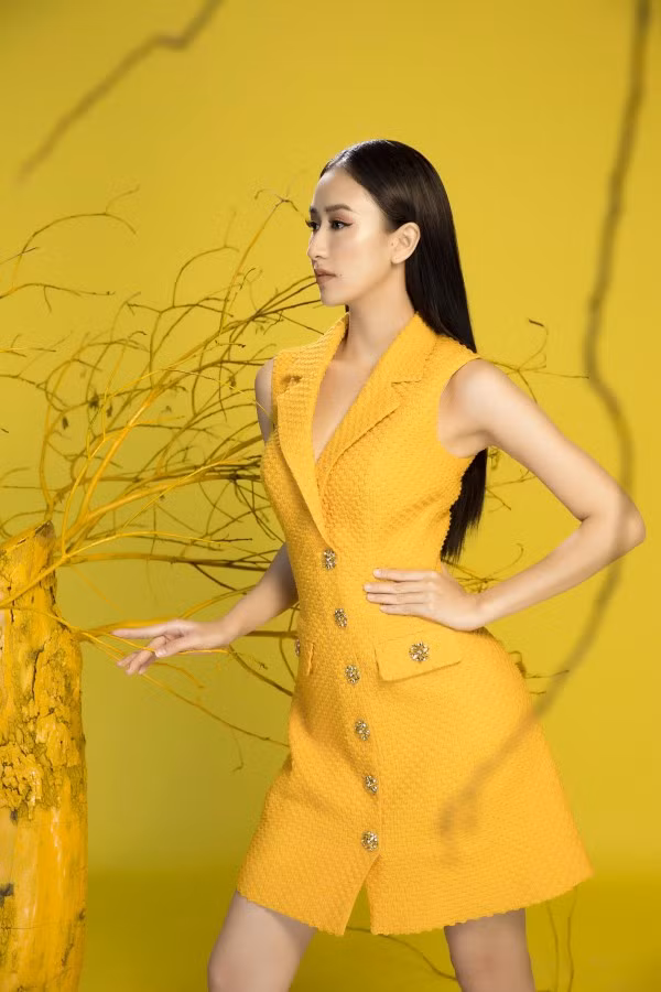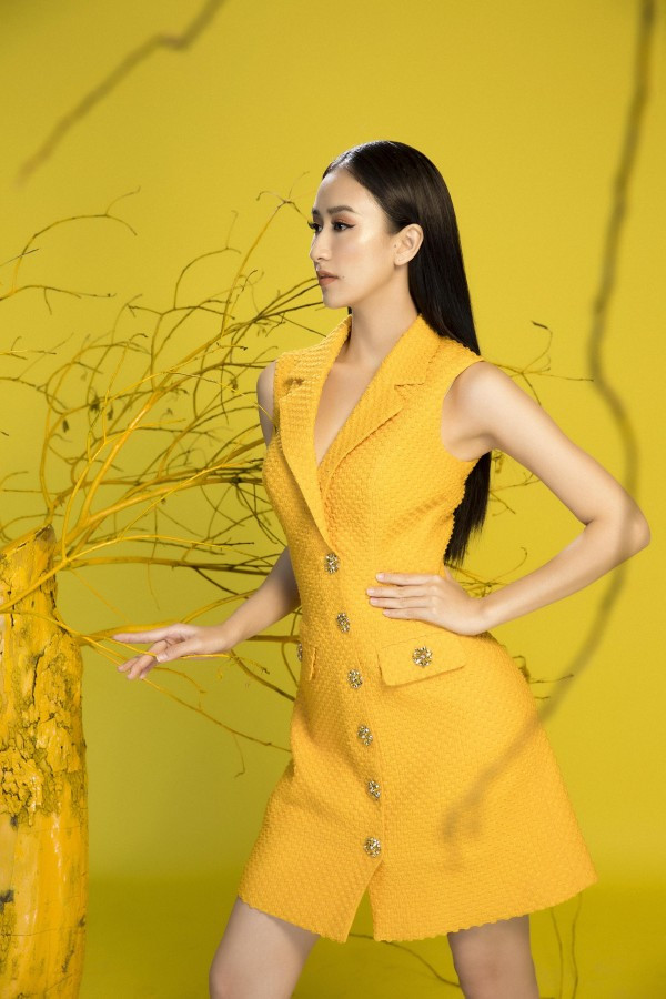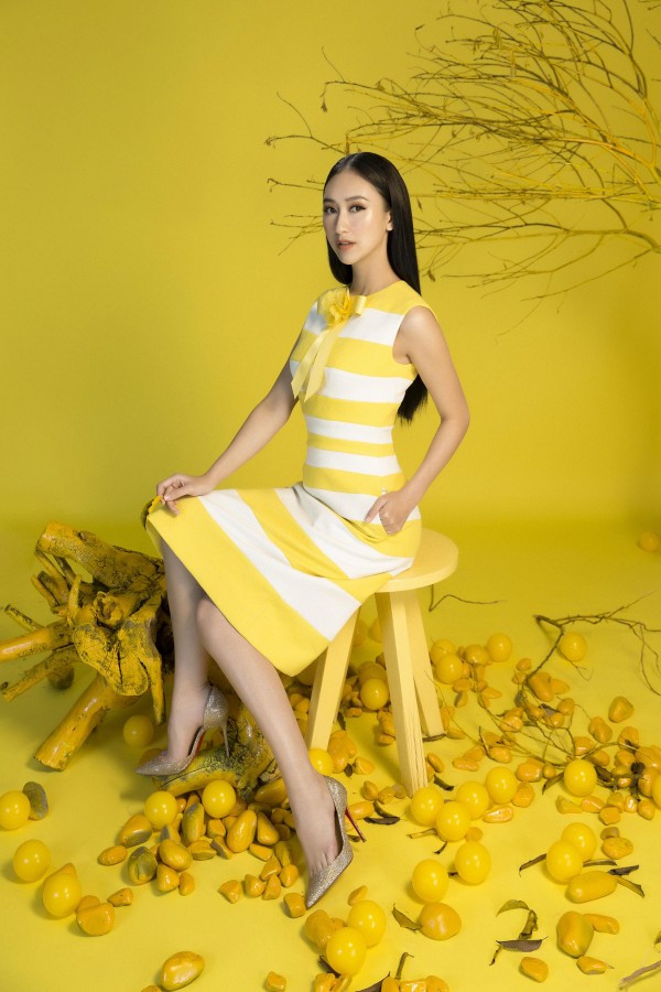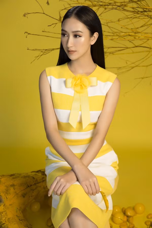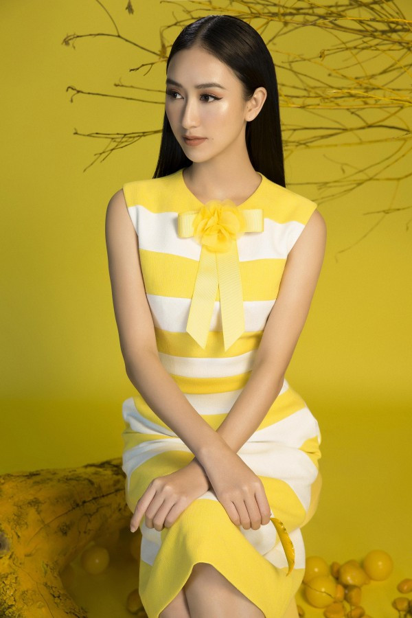 Hà Thu toát lên nét thanh lịch nhưng không kém phần nổi bật với sắc vàng rực rỡ. Sở hữu vẻ đẹp sang trọng cùng vóc dáng mảnh mai yêu kiều, gương mặt khả ái và nụ cười rạng rỡ, top 16 Hoa hậu Trái đất dễ dàng chinh phục người đối diện với bộ ảnh đón xuân lần này.