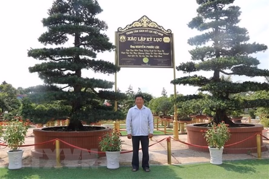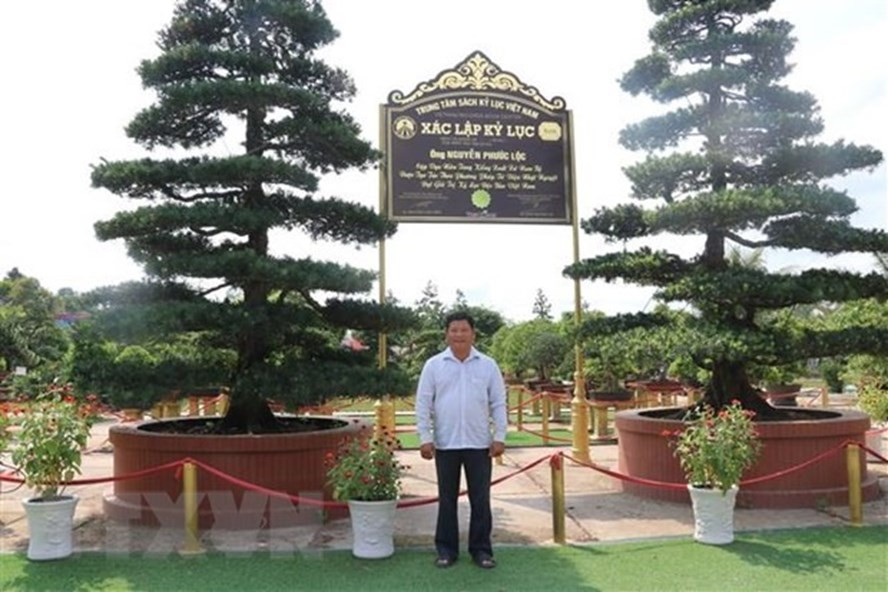 Hai cây vạn niên tùng của ông Nguyễn Phước Lộc ở xã Tân Khánh Đông, thành phố Sa Đéc, tỉnh Đồng Tháp vừa được Tổ chức kỷ lục Việt Nam xác lập kỷ lục “Cặp vạn niên tùng kiểng xuất xứ Nam Bộ được tạo tác theo phương pháp Tứ diện nhật nguyệt đạt giá trị kỷ lục độc bản Việt Nam” (ảnh).