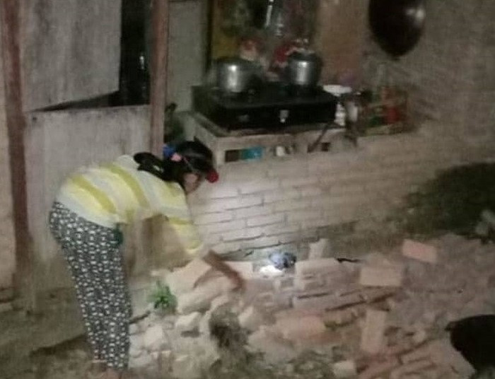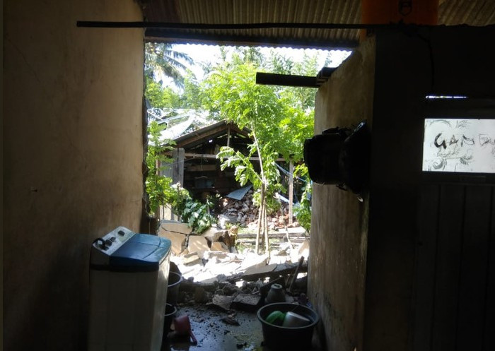 Một cư dân kiểm tra ngôi nhà bị hư hại tại ngôi làng Tobadak, Trung Mamuju, Tây Sulawesi, hôm 28/9. Ảnh: News.com.