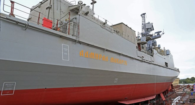 "Đô đốc Makarov" là tàu khu trục thứ ba thuộc dự án 11356, được đóng tại Yantar hồi tháng 2-2012 và hạ thủy hồi tháng 9-2015.