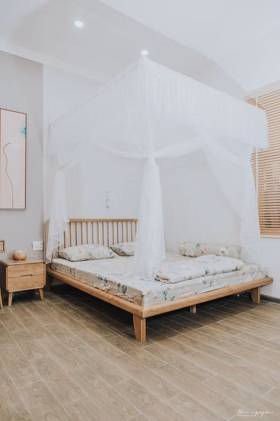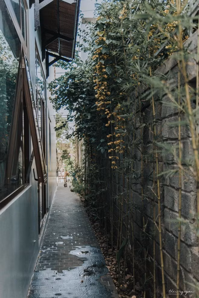 Chia sẻ về ý tưởng một ngôi nhà có bên ngoài truyền thống mộc mạc, bên trong hiện đại, gia chủ cho biết: “Câu chuyện bắt đầu từ những chuyến xe về quê. Khi đi qua các tỉnh miền Trung, mình bị mê mẩn bởi hình ảnh mái ngói đỏ nhấp nhô xen giữa những rặng dừa, cánh đồng lúa xanh, cảm thấy rất bình yên và dễ chịu… Trong đầu cứ mơ tưởng, nếu sau này mình có một ngôi nhà, có lẽ đó sẽ là một ngôi nhà mái ngói đỏ như ở vùng quê vậy”.