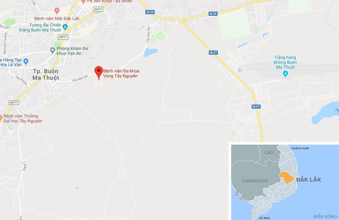 Bệnh viện đa khoa vùng Tây Nguyên, nơi xảy ra sự việc. Ảnh: Google Maps.