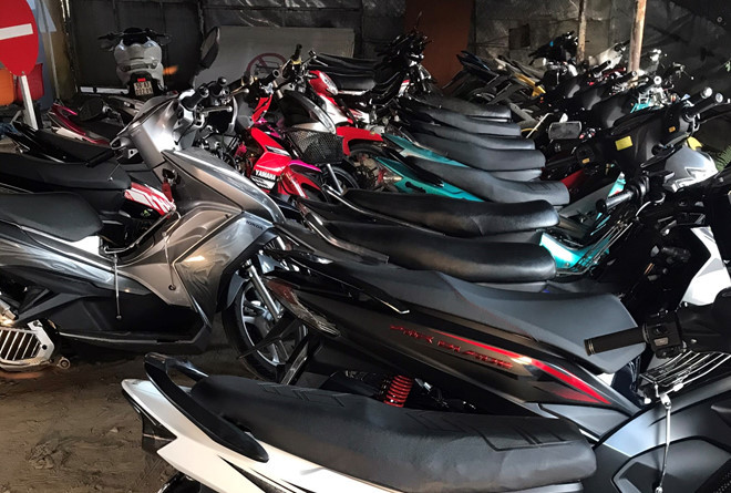 Xe máy của nhóm thiếu niên bị tạm giữ tại Công an TP. Đà Lạt để xác minh và xử lý. Ảnh: Lâm Viên