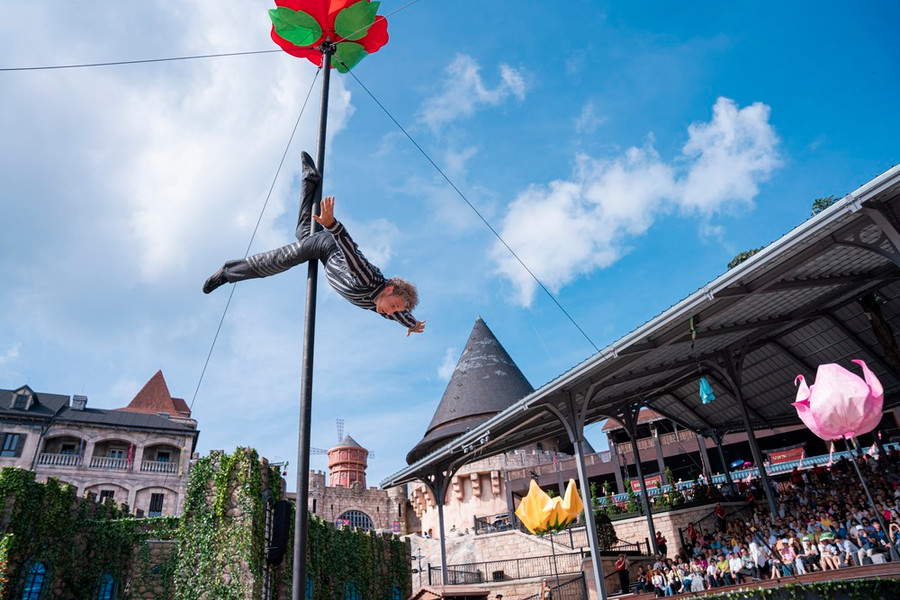 Xem show, khán giả sẽ liên tục phải bất ngờ khi chứng kiến những màn trình diễn xiếc đẳng cấp thế giới. Một trong những tiết mục được khán giả yêu thích là phần xiếc cột của ngôi sao người Pháp Domitil Aillot với những động tác khó và màn thả rơi cơ thể từ độ cao hàng chục mét. Sự duyên dáng của nam nghệ sĩ khiến khán giả vừa “thót tim” trước những pha mạo hiểm, vừa hò reo liên tục.