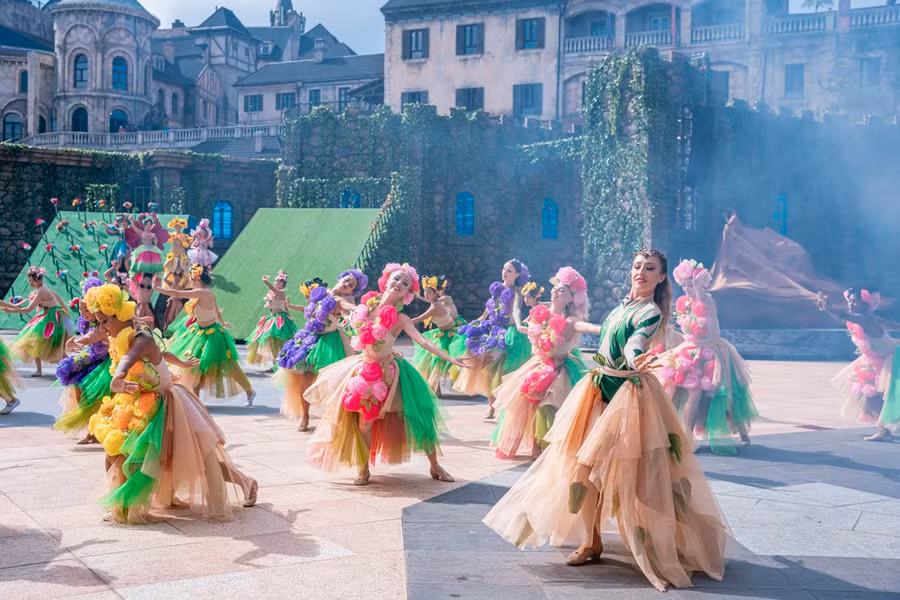 Hàng ngày cứ đến 11g, theo tiếng loa gọi mời đến dự bữa tiệc của những vũ điệu, âm thanh và truyện cổ tích tại “khu vườn thần tiên trên đỉnh Bà Nà”, những dòng du khách nườm nượp kéo về quảng trường Noel Plaza để cùng đón xem Fairy Blossom – show diễn có quy mô lớn nhất hè này tại khu du lịch Sun World Ba Na Hills.
