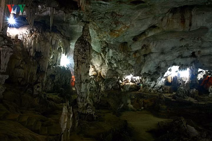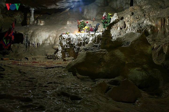 Đi sâu vào trong là phần “đuôi rồng”, hay còn gọi là khu vực “Kho báu Nhà Trời”. Khu vực này có diện tích khoảng 80m2, trần cao 10m. Đây là nơi có nhiều “báu vật”.