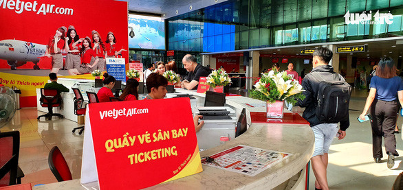Quầy vé của Vietjet tại sân bay Tân Sơn Nhất - Ảnh: C.TRUNG