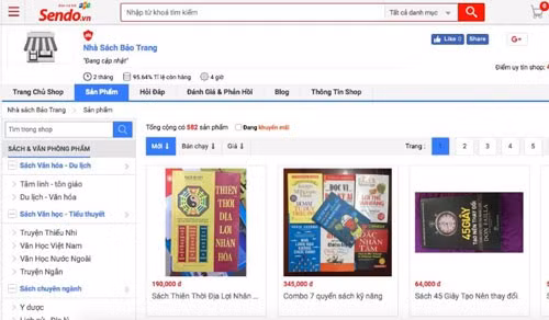 Nhà sách Bảo Trang đăng ký gian hàng trên Sendo nhưng thừa nhận bán sách lậu. Ảnh: Minh Chiến