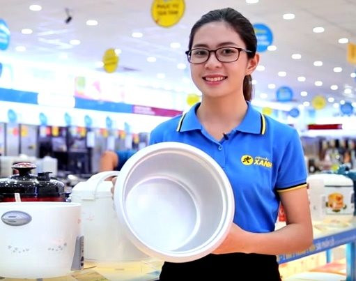 Nhân viên Thế giới di động giới thiệu bộ sản phẩm nhà bếp