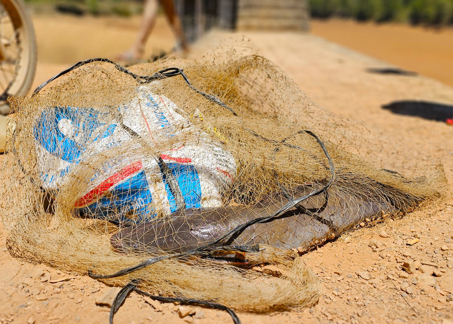 | Con cá trê khác khoảng 6-7 kg mắc lưới. Anh Tâm cho biết từ sáng tới trưa anh bắt được khoảng 6 con lớn tương tự, chưa kể các loại cá nhỏ khác. |
